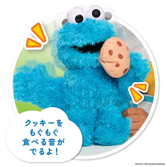クッキーを食べるのが大好きなクッキーモンスターは、お腹を押す(軽く触る)と、体が揺れてクッキーを食べる音や笑い声が流れます。