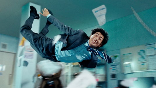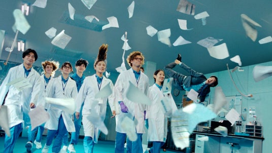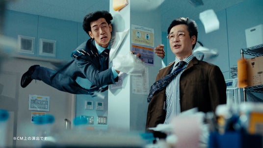主役は、前作同様に俳優の中島歩さんです。吹き荒れる“逆風”の中で真剣に研究と向き合う社員たちの一方、安井順平さん演じる上司とともに研究所に入った中島さんは、あわや飛ばされそうになってしまいます。しかし研究員がブレイクスルーした瞬間、“逆風”は“追い風”に変わり、中島さんも希望に満ちた表情で風に乗っていきます。
