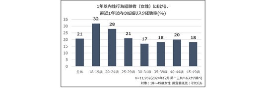 当社の調査(*7)によると、18~49歳の日本在住女性のうち、1年以内に性行為の経験がある方が約1,025万人(*8)。そのうち、予期せぬ妊娠のリスクを経験した方は約210万人(*9)と、性行為経験者の5人に1人の割合に上ります。日本で最も選択されている避妊法は男性用コンドームですが、装着ミスや破損などによる避妊の失敗率(妊娠率)は約2~13%とされており、避妊の手段を取りながらも失敗して妊娠リスクを経験するということは誰にでも起こる可能性があります。そのため、計画的な避妊に対する正しい知識とともに、万が一の場合に備えた対処法に関する正しい知識を身につけることが重要となります。
