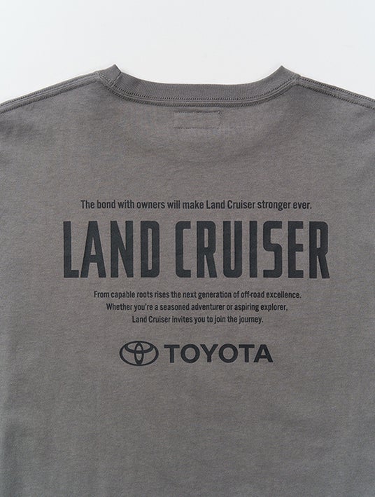 デザインは、ランドクルーザーのロゴを同色刺繍でさりげなく配置し、DuPont社の「Tyvek」で仕立てたミルスペック調タグをアクセントにしました。