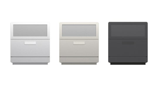 丸みを帯びたコーナーのフォルムと、前面にあしらわれたフロストガラスの質感が、製品にやわらかなエレガンスを与えています。また、物理ボタンを排したシンプルなユーザーインターフェースは、日々の手入れを容易にし、キッチン空間に自然に溶け込むデザインとなっています。