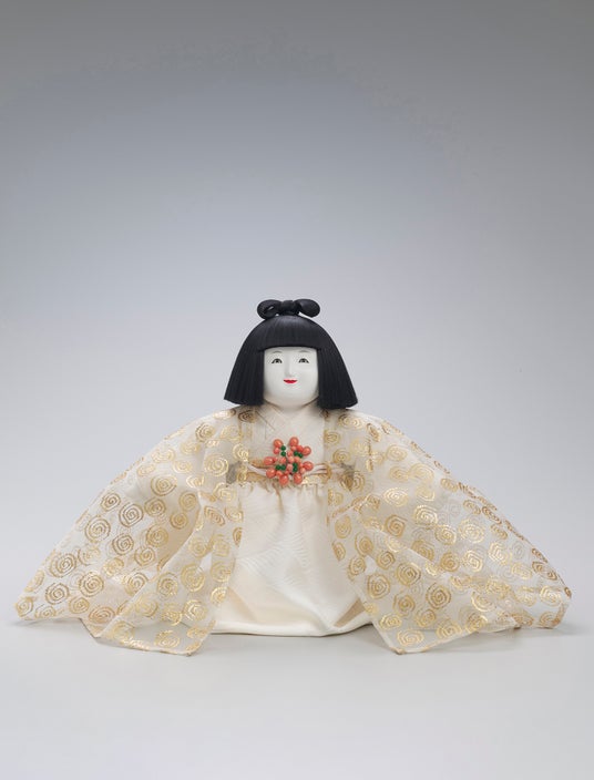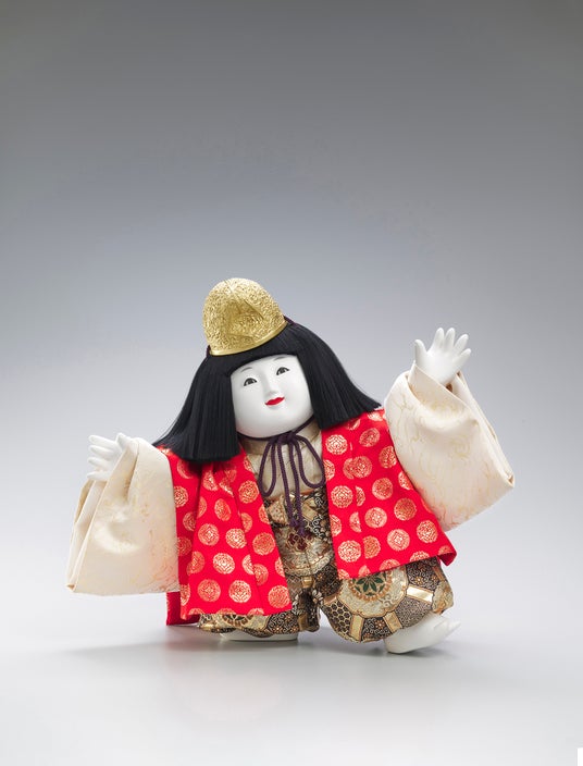 江戸時代中期より京都で代々御所人形を制作している有職御人形司 伊東家。一子相伝にて継承される御所人形は、桐材を用いた木彫法、艶やかな白い肌、そして愛らしい三頭身の姿が特徴です。