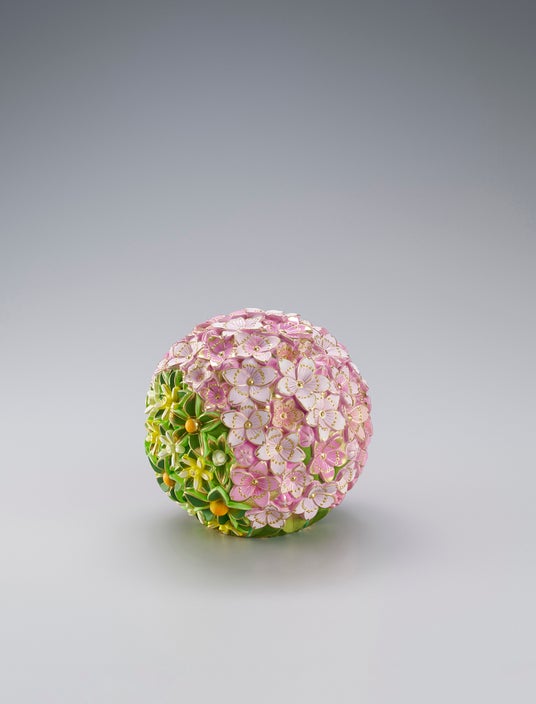 当代の久重氏は、格調高い御所人形を中心に、胡粉高盛金彩絵の飾筥や装飾作品、長男の庄五郎氏は、御所人形に加え、しらたま、掌で愛でたくなるようなちびたま、胡粉高盛金彩絵の立体を、孫の大知氏は、日本画を出品します。