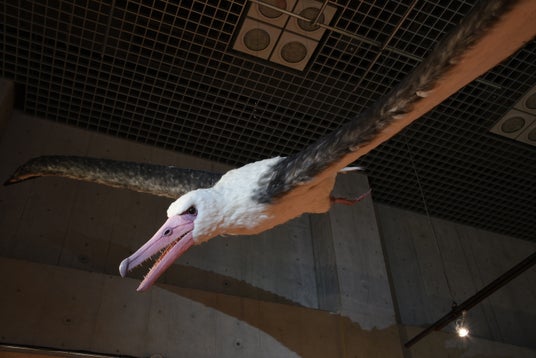 また、史上最大級の飛ぶ鳥「ペラゴルニス・サンデルシ」の生体復元モデルを日本初公開で展示します。現生の飛ぶ鳥で最も大きな「ワタリアホウドリ」の2倍以上で、翼を広げた長さが7mに達した