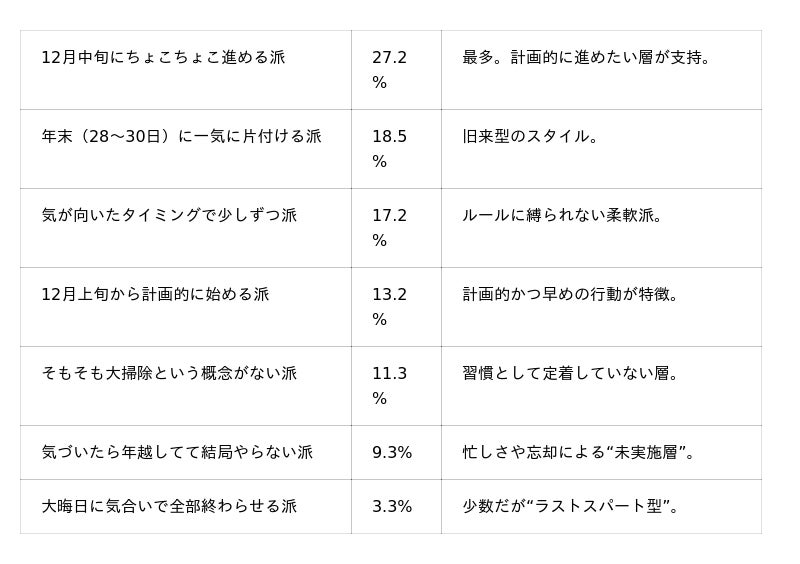 「年末一気型」「掃除しない派」も一定数存在