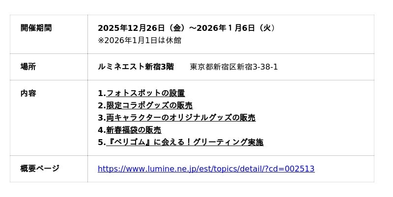 ~2025年12月26日(金)~2026年1月6日(火)新宿ルミネエストでポップアップイベント開催~