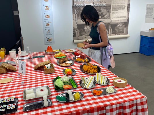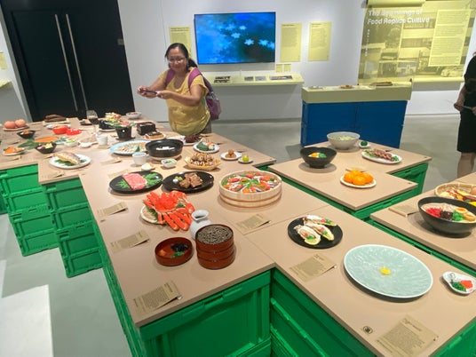 また、食品サンプルの歴史や文化的背景に加え、製作に用いる素材や道具、技術、工程など製作の裏側にも焦点を当てた展示をしています。さらは、外食産業以外にも、食育や栄養指導、医療、農業などさまざまな分野における実用性についても紹介し、日本人にとっても身近なようで意外と知らない食品サンプルが担うべき役目についても探求しました。会場には、来場者が食品サンプルを盛り付けて自分だけのオリジナル弁当を作ることができる体験コーナーも設けており、来場者がオリジナル弁当を撮影してSNSでシェアするなど、食品サンプルをインタラクティブに楽しんでもらっています。