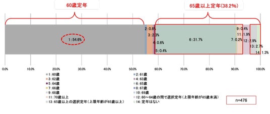 ●一方、「65歳以上定年(選択定年および定年なしも含む)」が38.2%