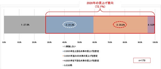 ●さらに、「2025年を下回る水準」を含めると、2026年の賃上げ意向は7割を超える