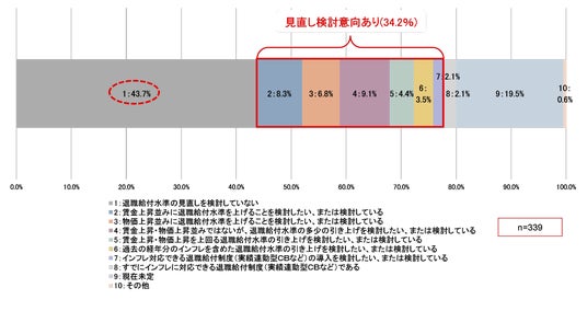 ●「退職給付水準の見直しを検討していない」が43.7%