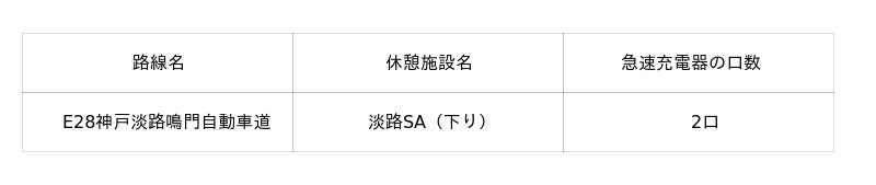 この取り組みの一環として、淡路SA(下り)において、12月19日(金)10時から充電サービス(有料)を開始することとしましたので、お知らせいたします。