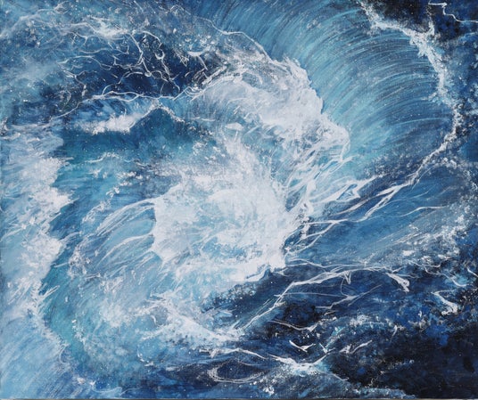 「瀬戸内海と旅」のイメージで描かれたF20号横型のアクリル画