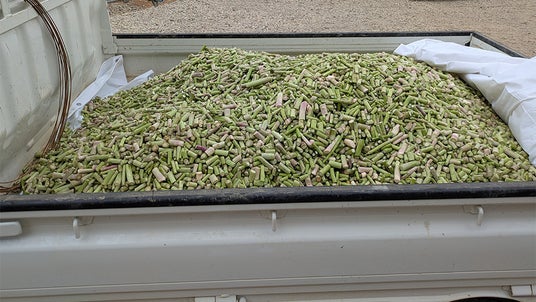 「プロロジスパーク北上金ケ崎」に集まった「アスパラガス」の茎部分。