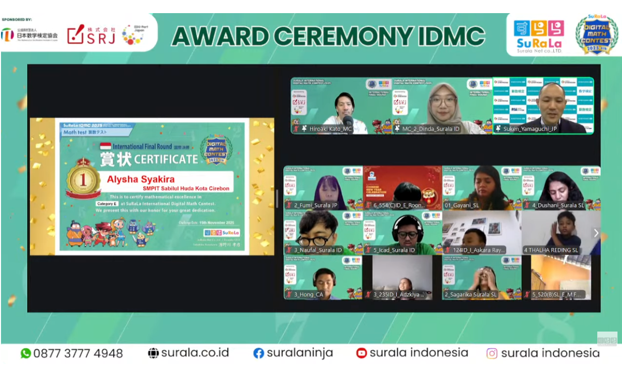 本コンテストは、すららネットが海外向けにシンハラ語(スリランカの公用語の1つ)などに翻訳したデジタル算数/数学AI教材「Surala Math」の提供に加え、子どもたちが目標に挑戦し、努力が成果につながる成功体験を通じて、自信や自己肯定感を醸成する機会をつくることを目的に、2017年から各国の現地のパートナー企業とともに開催している算数・数学の力を競い合うコンテストです。今年2025年は6回めの開催となり、日本、インドネシア、スリランカ、フィリピン、エジプト、カンボジアの6か国から3,400人を超える子どもたちが参加しました。