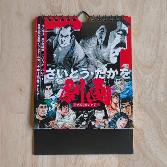 『ゴルゴ13』『鬼平犯科帳』『サバイバル』『バロム・1』など、厳選された劇画イラストと名セリフで贈る全31枚の日めくりカレンダーです。