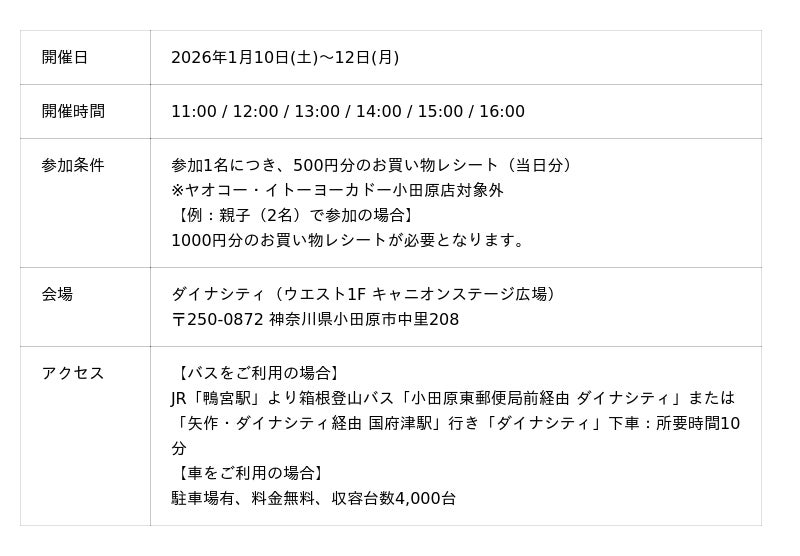 2026年1月10日(土)~12日(月) <開催場所:小田原ダイナシティ>
