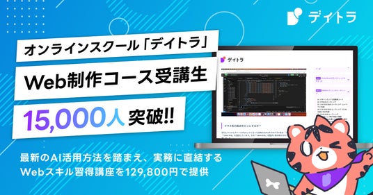 株式会社デイトラが運営するオンラインスクール「デイトラ」のWeb制作コースは、2025年12月9日時点で受講生数が15,000人を突破しました。Web制作コースは、HTML/CSS、JavaScript、WordPress、最新AIの活用法など、Webサイト制作に必要な技術を基礎から実践レベルまで学べるカリキュラムを提供しています。動画教材による学習と、現役エンジニア講師への質問対応を組み合わせた学習環境が特徴です。