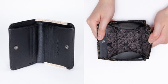 手のひらにすっと収まるコンパクトなサイズながら、カードポケット6箇所、内外のオープンポケット計3箇所、さらに2室構造の札入れを備えた頼もしい収納力が魅力。外側に配した小銭入れも大きく開くので、必要な小銭へスムーズにアクセスできます。