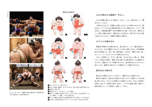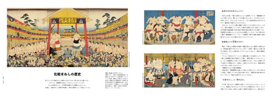 本書では、普段は見ることのできない下絵やデザイン図案、相撲博物館に所蔵されている貴重な化粧まわしや力士の着姿写真などを、すべて解説つきで紹介(日英バイリンガル表記、オールカラー208 頁)。化粧まわしの仕立て職人や着物(京友禅)の老舗、締め込みの織物工房などの製作現場にも取材撮影&収録しています。