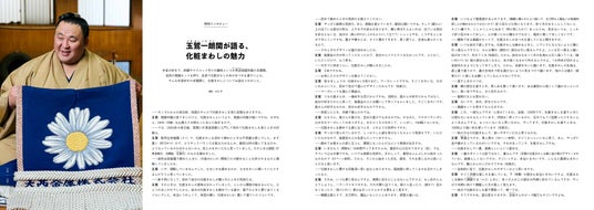 手芸・裁縫が趣味である玉鷲関に、化粧まわしの魅力についてたっぷり語っていただいたインタビュー記事や、化粧まわしの歴史解説、化粧まわしや染め抜き生地の色見本帳を紹介。