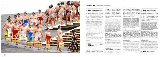 力士たちの染め抜き着物姿は、場所入りや巡業、行事などで見ることができる。色とりどりの染め抜き着物を身にまとい、個性と魅力にあふれた力士たちの写真も、解説&力士の略歴とともに収録する。