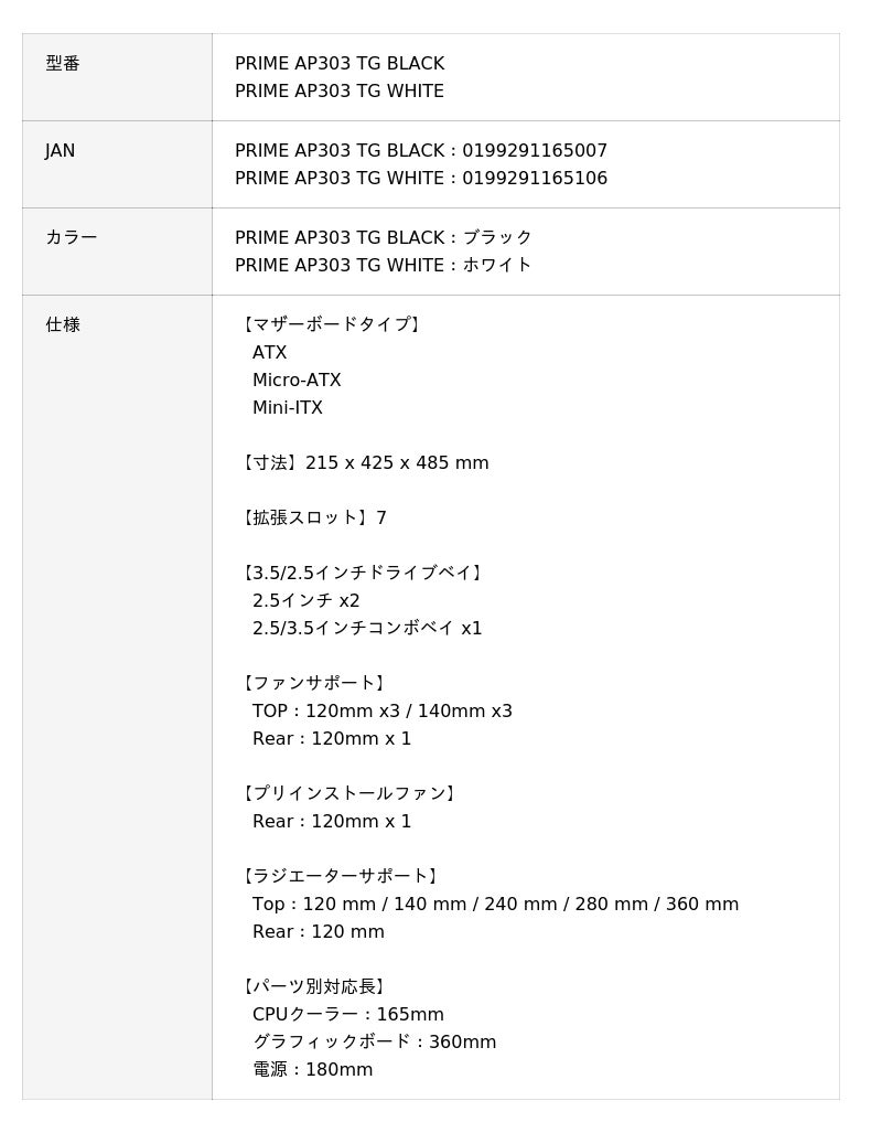 PRIME AP303 TG シリーズ | ASUS (エイスース) ATXマザーボード対応 強化ガラスパネル 採用 PCケース