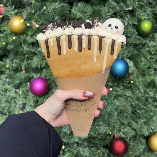 ここでしか出会えない、“上野限定”のパンダクレープ白と黒のコントラストが愛らしい、パンダをイメージしたオリジナルクレープ。