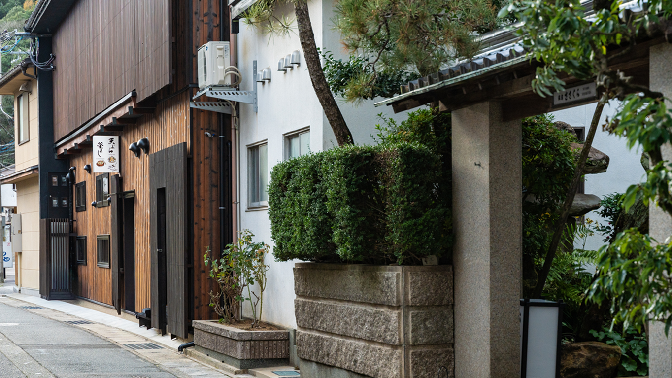 JR城崎温泉駅から徒歩約5分、外湯「地蔵湯」へも徒歩約1分と、温泉街散策の拠点として便利な立地です。