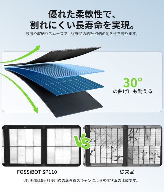 「次世代フレキシブル素材」と「七層強化構造」を採用。従来のフレキシブルパネルと比べて約2~3倍の耐曲げ性と耐衝撃性を誇ります。IP67規格の完全防水防塵仕様により、雨天や砂塵の多い環境下でも安心してご使用いただけます。