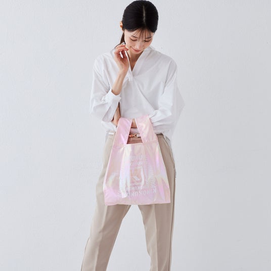 きらりと輝く淡い色合い光の加減によってきらりと輝く、淡い色合いが魅力のエコバッグです。街中でも映える上品な光沢感が、日常の装いに華やかさを添えてくれます。