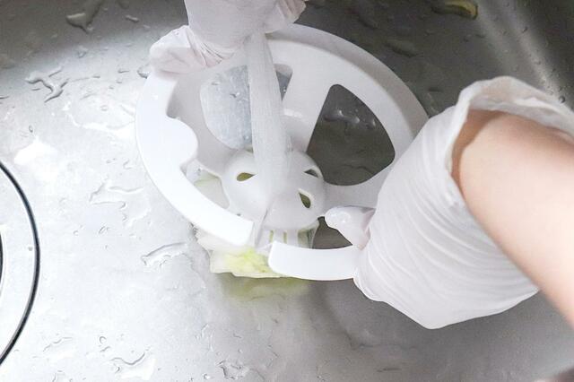 さらにしっかり水気を切るなら、ホルダーをぎゅーっと引くのもオススメ。