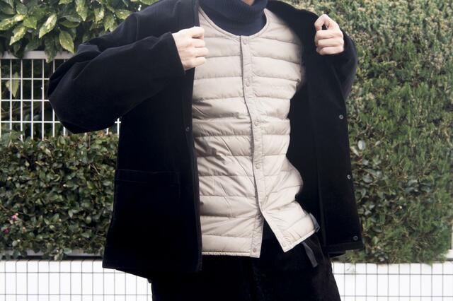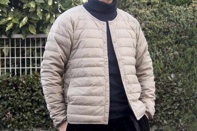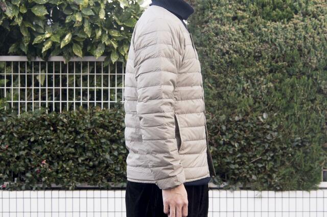 ボリューム感が抑えられている薄手のダウンジャケットなので、中間着として着た時にもゴワついたり着膨れしたりということもなく快適。