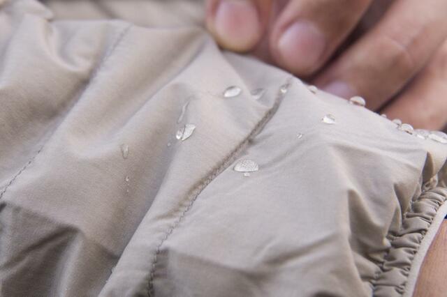 表地と裏地のリップストップナイロン素材には撥水加工が施されているので、軽い雨なら染み込むことなく弾いてくれます。