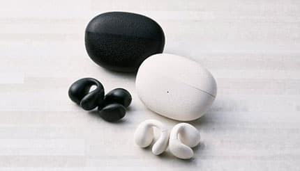 新製品は、優しくフィットする柔らかいブリッジのイヤーカフ構造を採用したオープンイヤー型の完全ワイヤレスイヤホン。音楽を聴きながら周りの声や音も聞くことができ、車の走行音や通行人の声などイヤホンを外すことなく確認できる。
