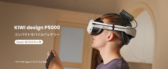KIWI designは、P5000の価値を最大化するため、Quest 3/3Sに対応K4・H4コンフォートヘッドストラップと組み合わせることで、「無限に近い電力」 と 「頭部へのゼロ負担」 という2つの理想を同時に達成。ユーザーは物理的制約から完全に解放され、没入世界そのものに没頭できるようになります。