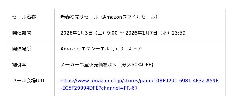 車・バイク用カスタムパーツ専門店エフシーエル(fcl.)を展開する株式会社WiNEEDS HOLDINGS(所在地:広島市南区、代表取締役社長:尾田 雅史)は、2026年1月3日(土)9:00よりAmazonにて開催される「Amazonスマイルセール(新春初売り)」に参加し、人気LED製品などを最大50%OFFで提供するキャンペーンを開始します。