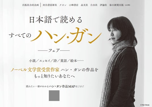 12月下旬からはハン・ガン作品を刊行する日本の出版社7社が集結し、「日本語で読めるすべてのハン・ガンフェア」を全国の200軒以上の書店で順次開催することにも注目が集まっています。開催書店では邦訳全作品チャートなどを掲載した特製リーフレットを配布予定です。