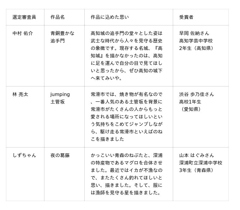 ※作品名、作品に込めた思い、受賞者名は、応募用紙記載の内容です。