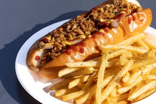 ホットドッグ、ポテト、ナチョス、コーヒーなど販売。ジューシーなソーセージを挟んだホットドックは、ボリュームたっぷりで満足度の高いひと品です。
