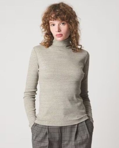 素材の風合いをいかしたミニマルなタートルネックカットソー。