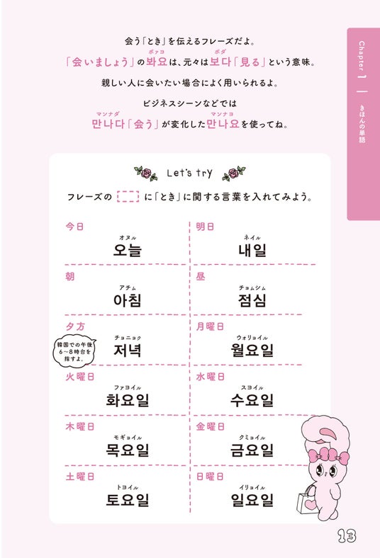 このたび刊行される『エスターバニー 使える韓国語単語&フレーズ集』は、エスターバニー史上初となる韓国語語学書。K-POPや韓国アイドルをきっかけに韓国語に興味を持った読者の方々を、SNSで圧倒的な支持を受けるエスターバニーがキュートに応援する、今までになかった一冊です。