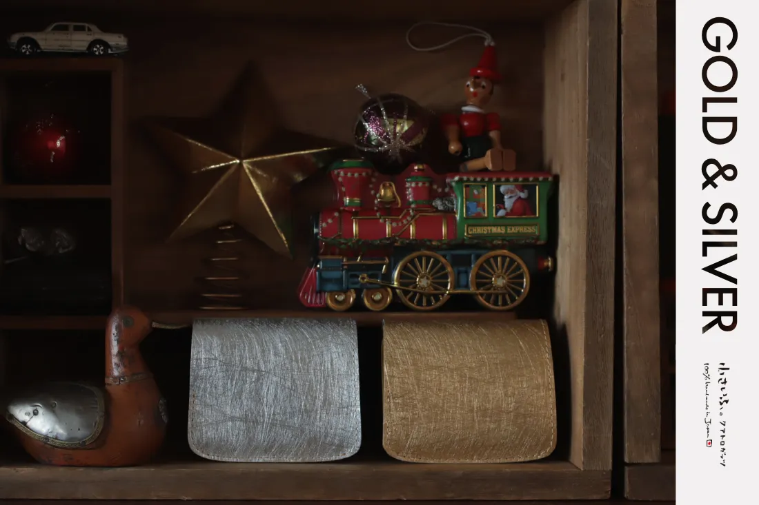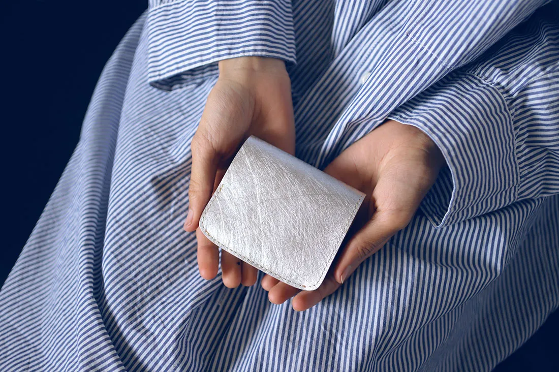 開運日に向け新色「シルバー」が登場。箔押しの本革で、革職人がハンドメイドするミニ財布。
