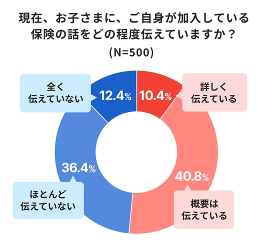 - 子どもから聞かれたら「嬉しい・きちんと話そうと思う」親は92.0%。しかし現実には48.8%が、自身の保険の内容を「伝えていない」。
