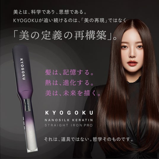 「KYOGOKU PROFESSIONAL」より、新商品「ナノシルクケラチンストレートアイロンプロ」を発売いたします。分子レベルで温度を制御し、理想のスタイリングを可能に