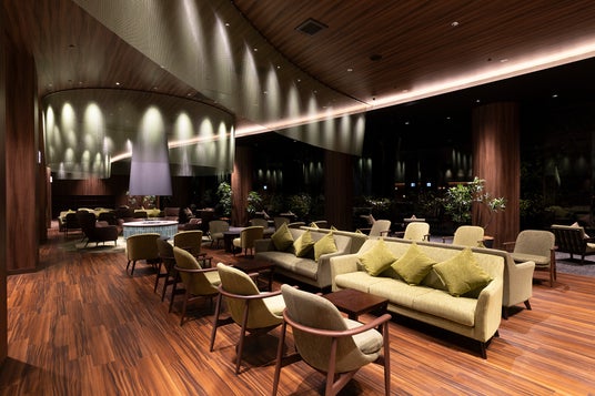 ■岩手・花巻の自然と文化が息づく、開放感あふれるくつろぎのプレミアムラウンジが誕生吹き抜けの高い天井が印象的なロビーは、岩手・花巻の雄大な自然と文化をテーマにした上質な空間です。大地を思わせるアースブラウンと、木漏れ日のようなグリーンを基調とした落ち着いた雰囲気のなか、この地に伝わる伝統文化をアクセントとして散りばめました。