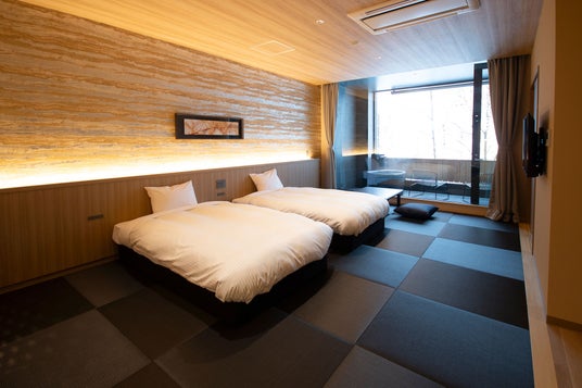 また、一部の客室を和の安らぎとベッドの快適性を兼ね備えた「和ベッドルーム」にリノベーションいたしました。和の情緒を残しつつ、ベッドで快適に過ごせる和ベッドルームは、シニアのお客様や小さ なお子様連れのお客様も快適にお過ごしいただけます。そのほか、和室・洋室・和洋室など、多種多様な部屋タイプを揃えているので、宿泊される人数や旅の目的に合わせてお好きなタイプをお選びいただけます。