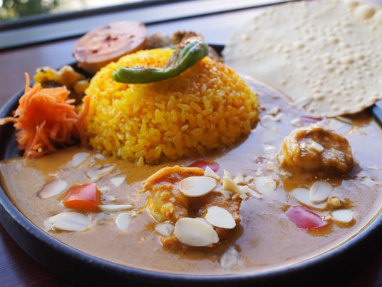 MATAHARI COFFEE人気ナンバーワンのエビココナッツミルクカレー。こちらはお店で食べられます。(2025年12月現在)