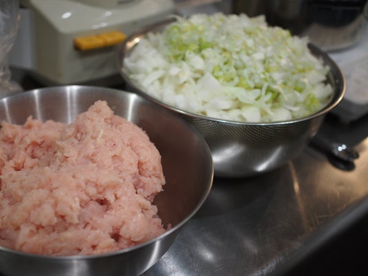 麻婆キーマカレーはブロックの鶏胸肉をお店でミンチに。