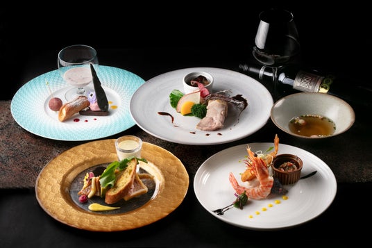 シェフが丁寧に手間をかけて彩り鮮やかに仕上げ、旬の恵みを丁寧に紡いだこだわりのコース。素材が織りなす多彩な味わいとともに、心躍るひとときをお届けいたします。
