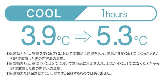 保冷効力:3.9℃ → 5.3℃(1時間)